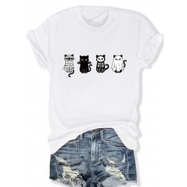 Plus Size - Women'S Plus Size Halloween Ghost Print T-Shirt - Cute Witch Hat & Broom Design, Breathable Polyester Blend, Round Neck Short Sleeve Top, Machine Washable Casual Summer Outfit, Lightweight & Comfortable for Casual Attire, Halloween Shirts