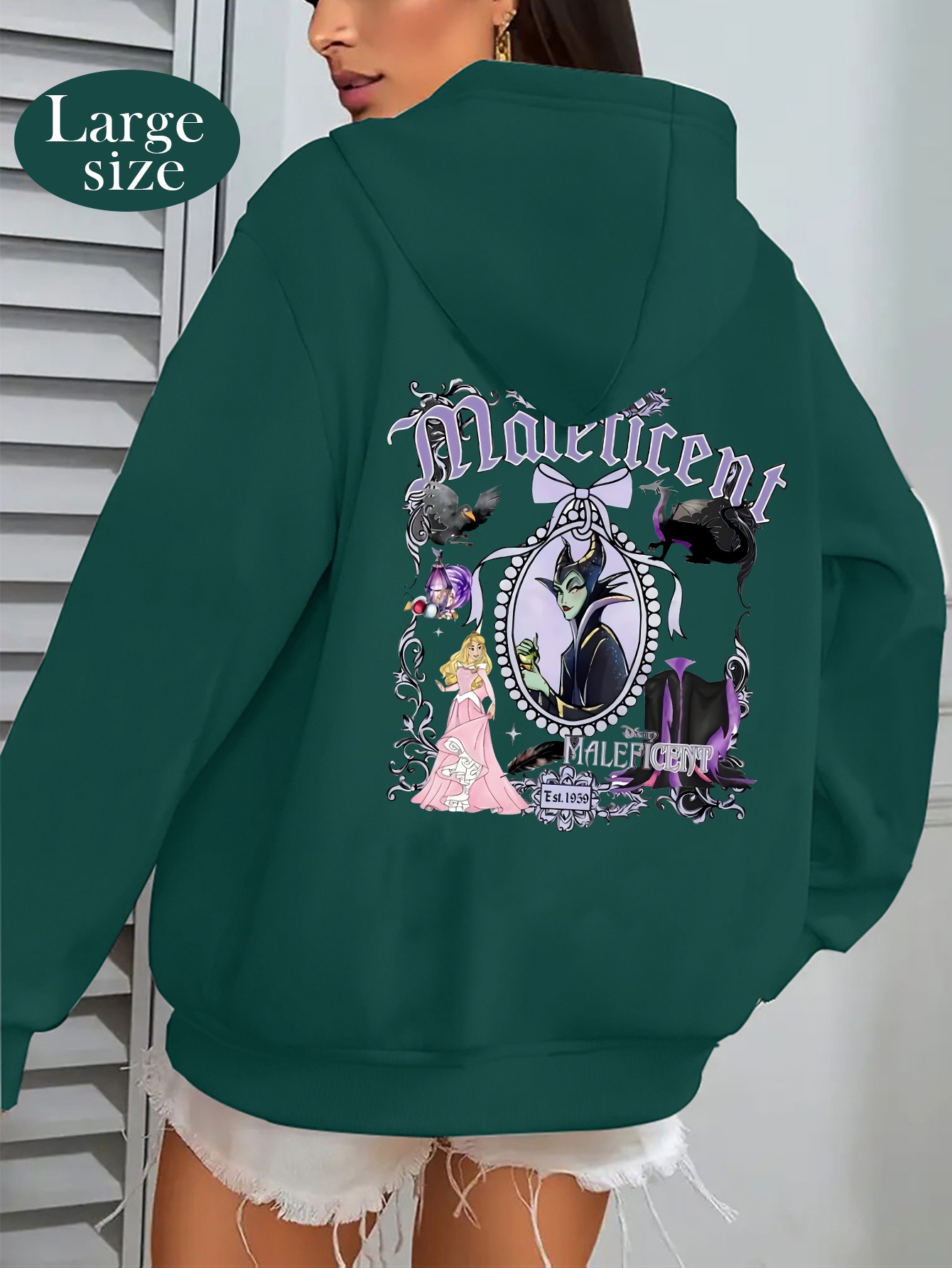 [Disney Women's Fashion Hoodie] 1pc Disney Luxurious Winter Large Size Women's Fashion Hoodie, Toy Story Theme, Maleficent, Printed Hoodie Sports Top, Street Style Women's Zip-Up Sweatshirt, Suitable for Gifting