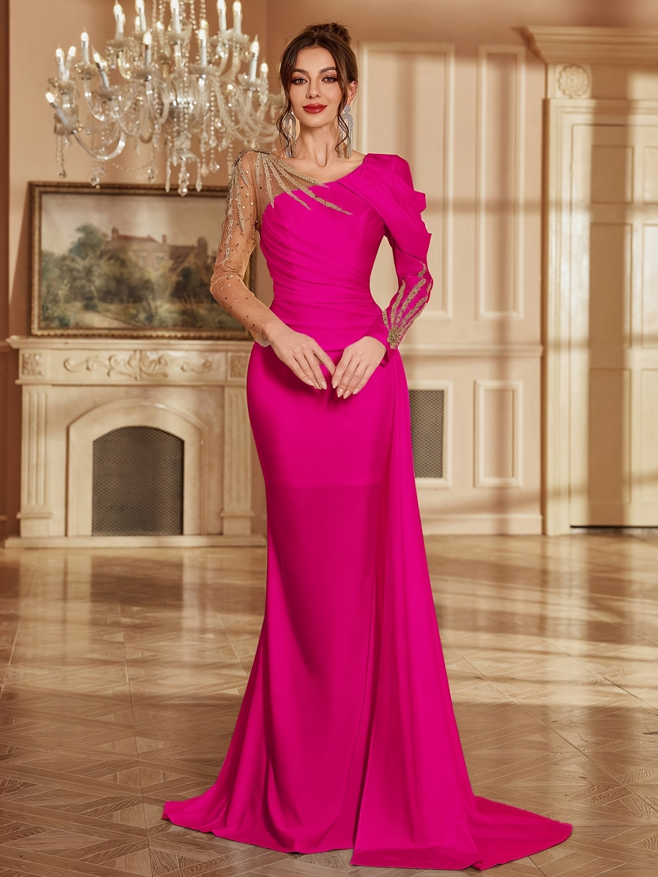 Women's Formal Evening gown - V-Neck Long Formal dress with Zipper back, Elegant Mermaid Party, Wedding, State Gala - Machine Washable Formal Attire in Bright Pink