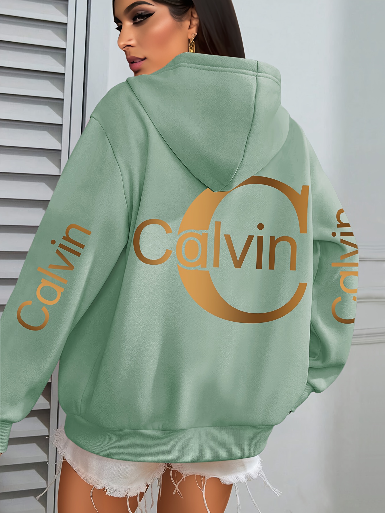 Women'S Calvin Graphic Hoodie - Black with Golden Lettering, Cozy Fall/Winter Pullover Sweatshirt, Hooded Sweatshirt for Everyday & Formal Outfits, Casual Wear, Trendy Design, Comfortable Fit, Stylish Hoodie, Fashion Lovers