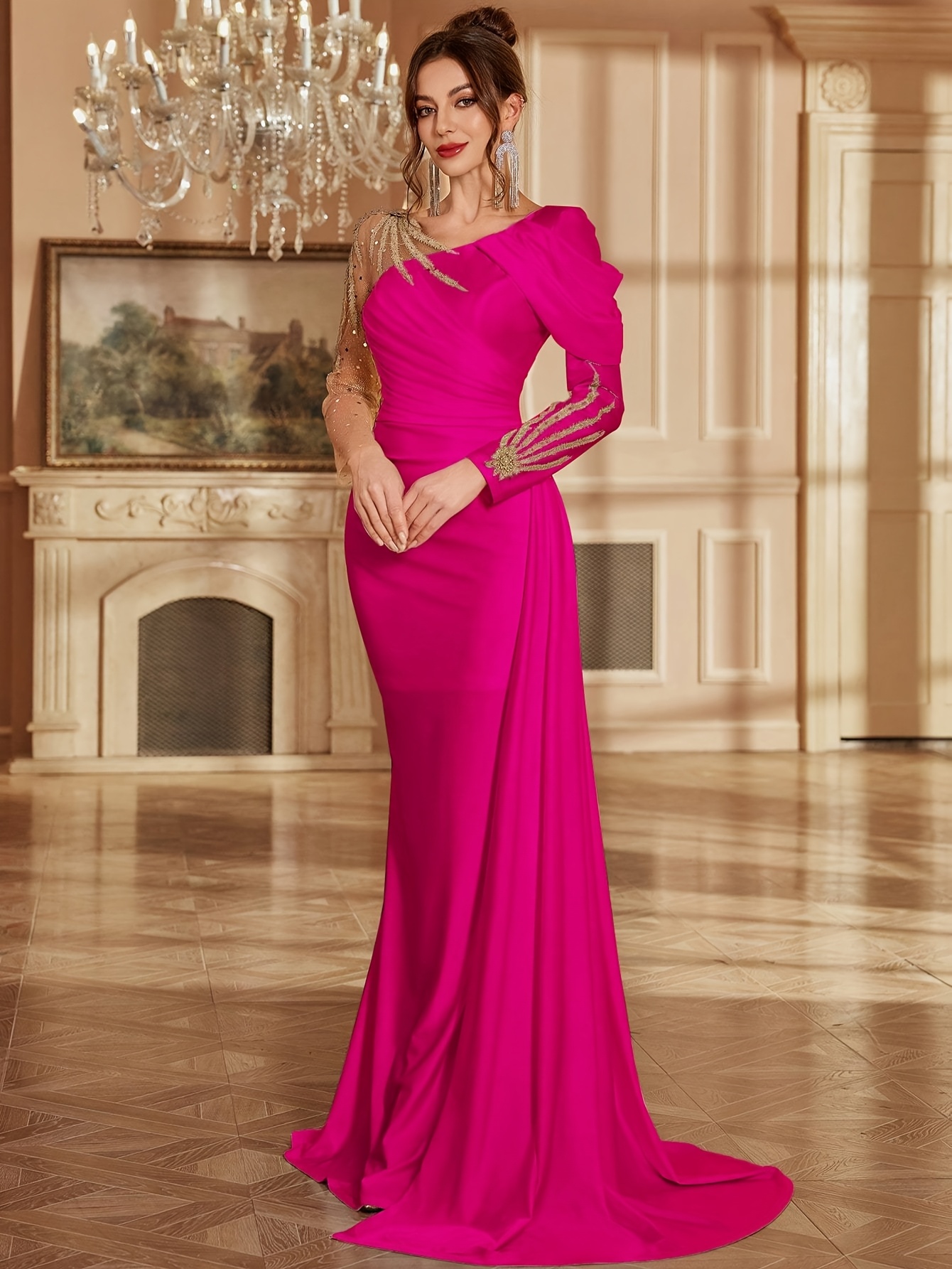 Women's Formal Evening gown - V-Neck Long Formal dress with Zipper back, Elegant Mermaid Party, Wedding, State Gala - Machine Washable Formal Attire in Bright Pink